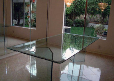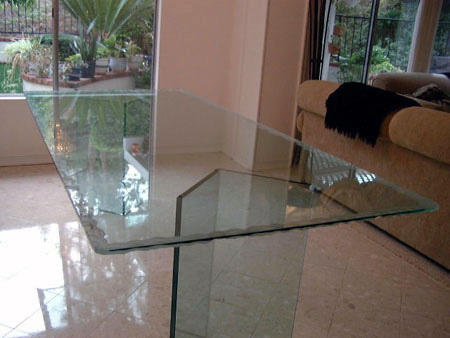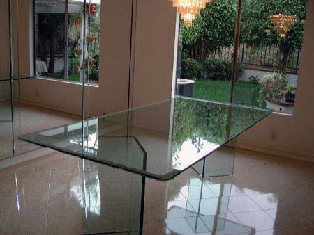 glass table tops. Thicker glass can be fabricated with machine cutting and finishing.